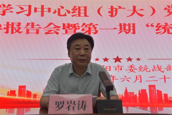 6月20日,市委统战部举办理论学习中心组(扩大)党纪学习教育辅导报告会暨第一期“统战大讲堂”。市委统战部常务副部长罗岩涛主持并讲话,市委党校副校长邹艳秋教授作辅导报告。