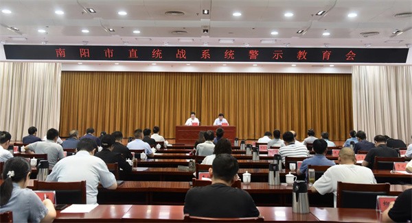 6月12日,南阳市委统战部组织召开市直统战系统警示教育会,传达全市警示教育会精神,深入学习习近平总书记关于全面加强党的纪律建设的重要论述,贯彻落实市委党纪学习教育的部署要求。市委常委、统战部部长范勇出席并讲话,市委统战部常务副部长罗岩涛主持会议。