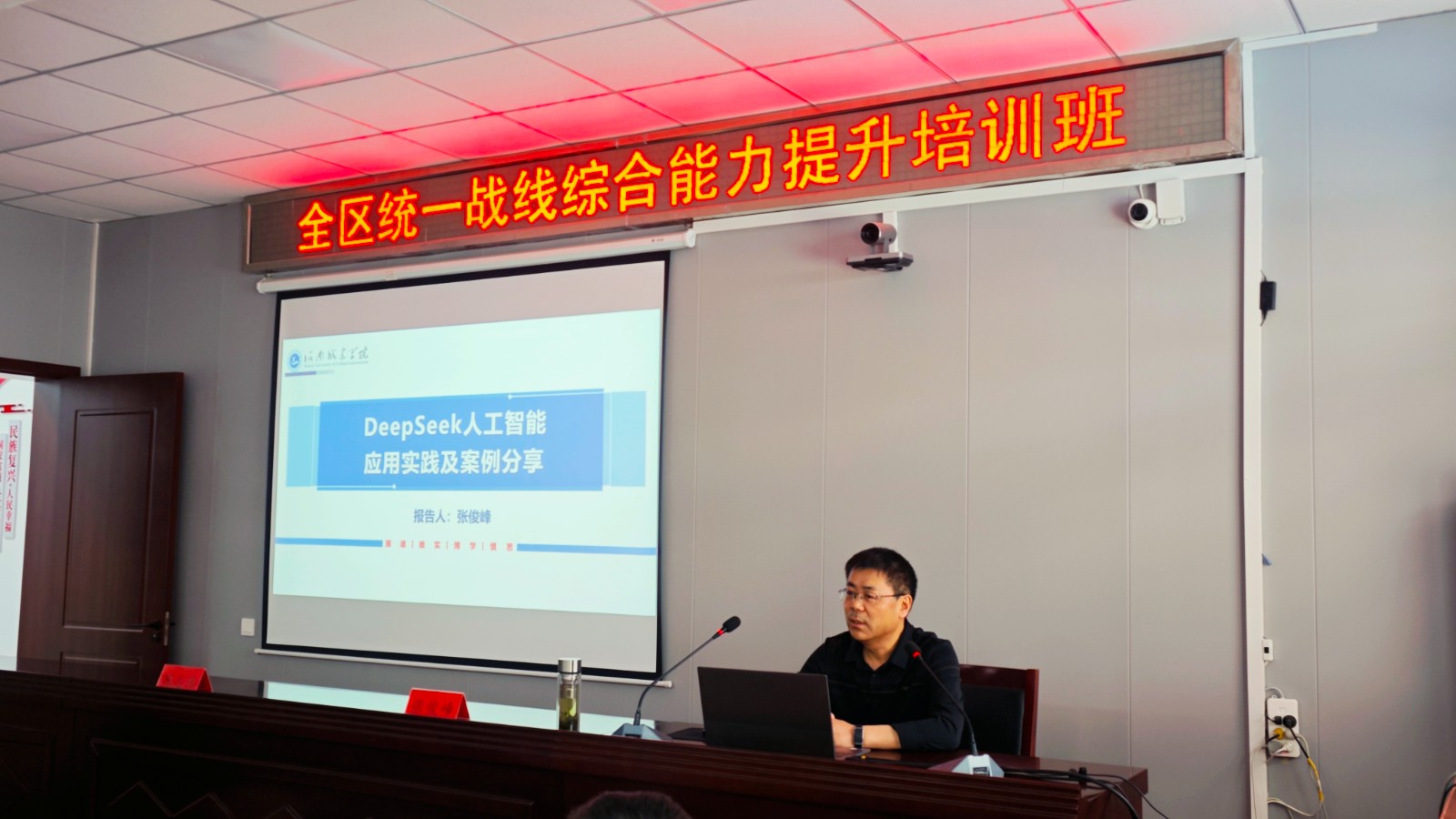 培训邀请到了河南城建学院教授张俊峰围绕DeepSeek人工智能应用实践及案例进行分享,张俊峰从人工智能的前世今生、DeepSeek的起源与诞生、DeepSeek工具应用案例、人工智能安全及伦理四个方面进行了全面深入的讲解。整场培训内容详实丰富,讲解生动有趣,充分展现了AI技术在不同场景下的创新应用。