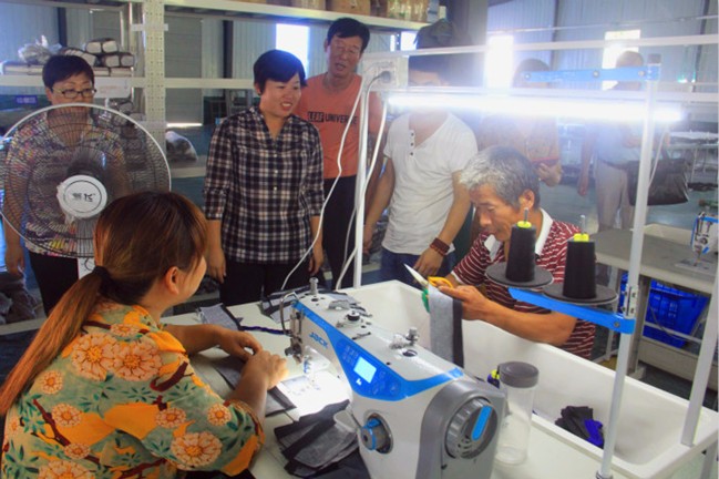 赵来霞一行首先来到精准扶贫就业帮扶基地,察看企业运营情况,详细询问了贫困户就业和工作状况,并指出企业要加大宣传力度,多形式招聘工人,贫困群众要坚定信心,学习技术,靠自己的双手脱贫致富。