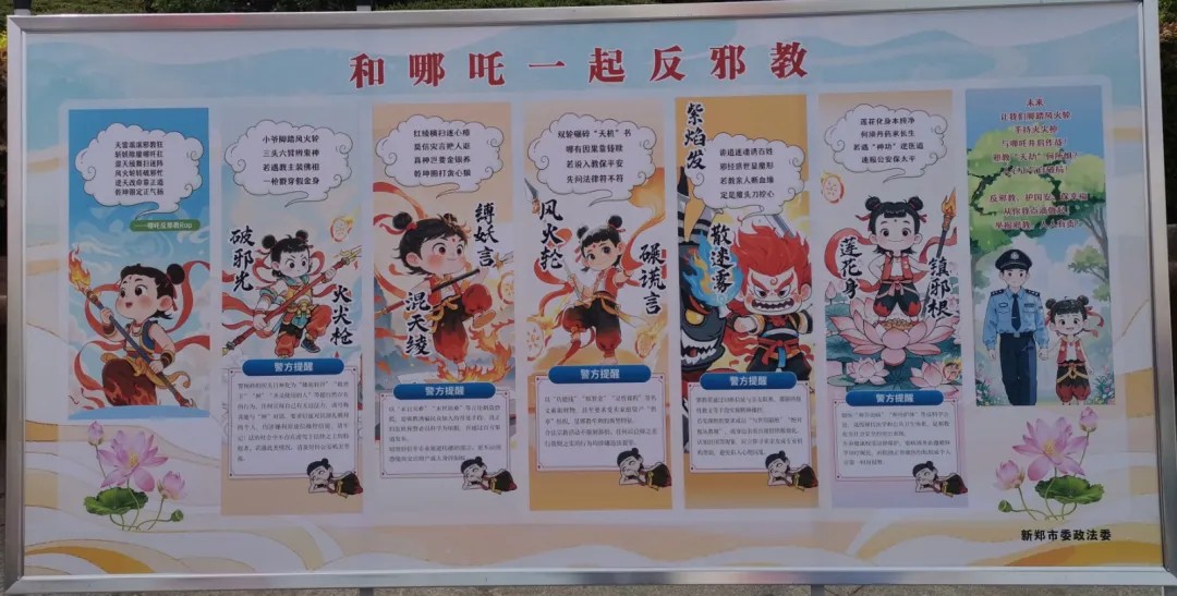 “天雷滚滚邪教狂,斩除妖魔哪吒扛;混天绫舞扫迷阵,风火轮转破邪忙……”4月17日,在新郑市人流如织的炎黄广场,一幅幅设计精美、内容详实的宣传展板吸引广大市民群众驻足观看。当天,新郑市举行铸牢中华民族共同体意识暨民族宗教政策法规宣传月集中活动,新郑市委常委、统战部部长杜平参加。